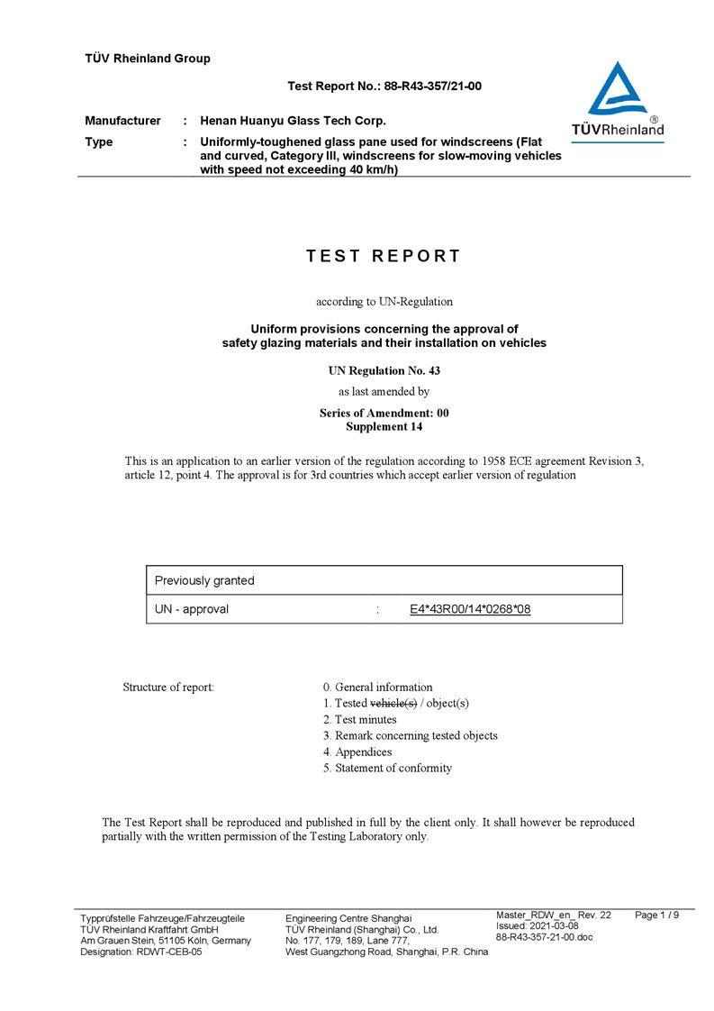 河南環(huán)宇玻璃科技股份有限公司年產(chǎn) 5 萬(wàn)平方米驗(yàn)收?qǐng)?bào)告公示